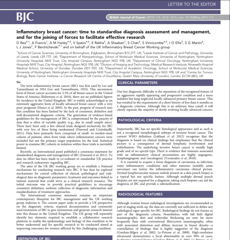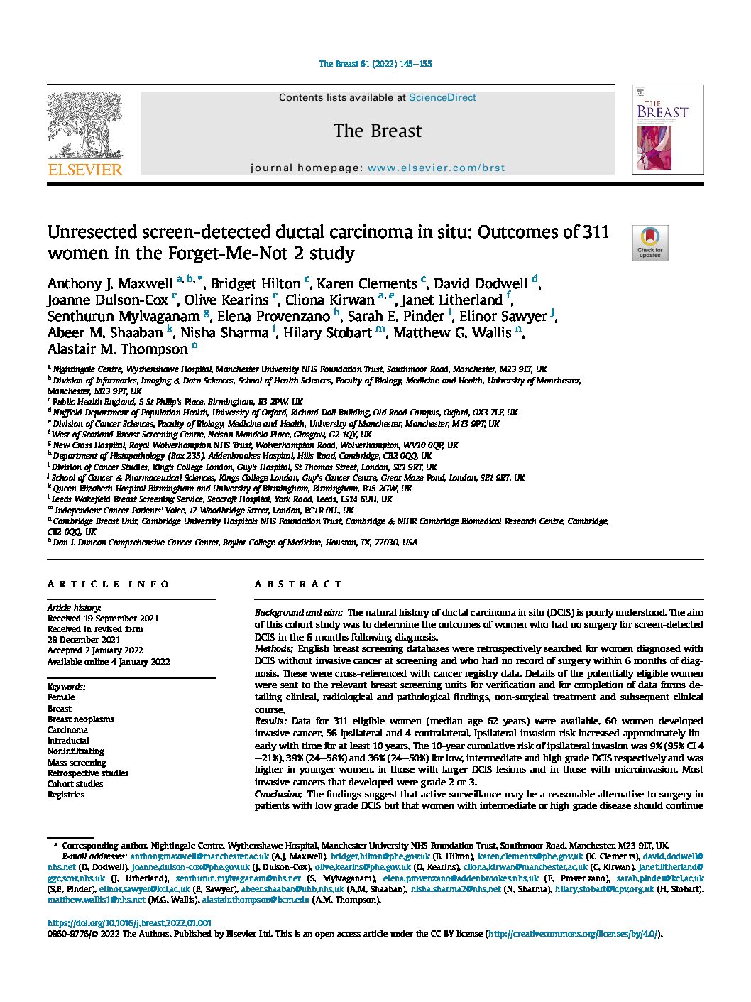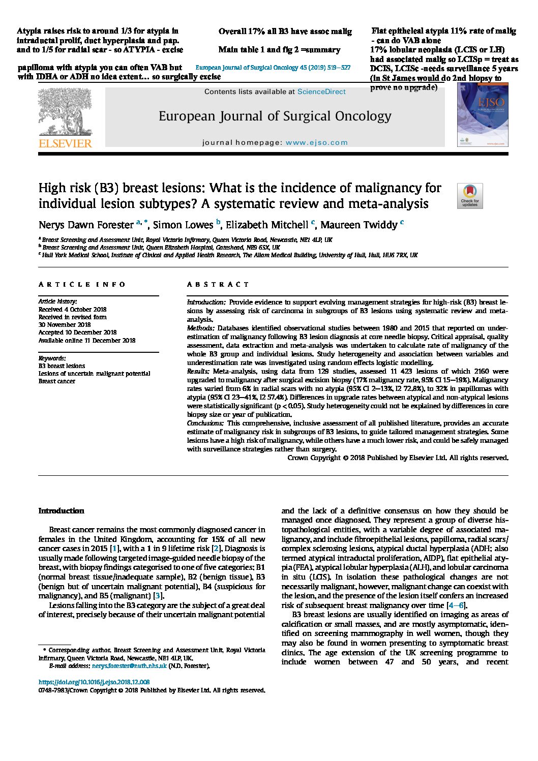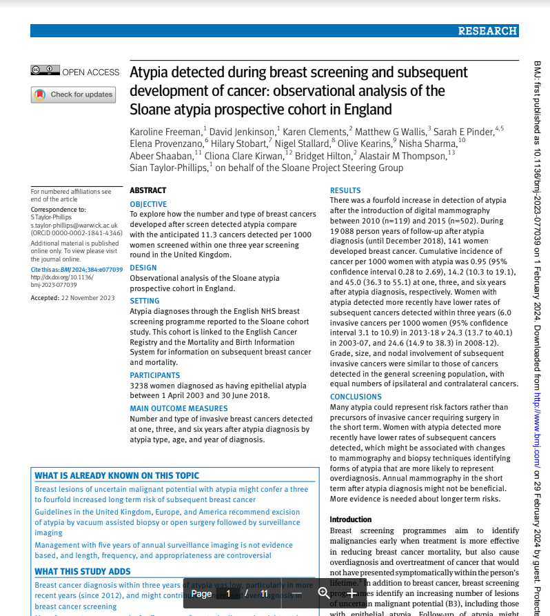 Atypia detected during breast screening and subsequent development of cancer observational analysis of the Sloane atypia prospective cohort in England (2023)View DocumentFavorite