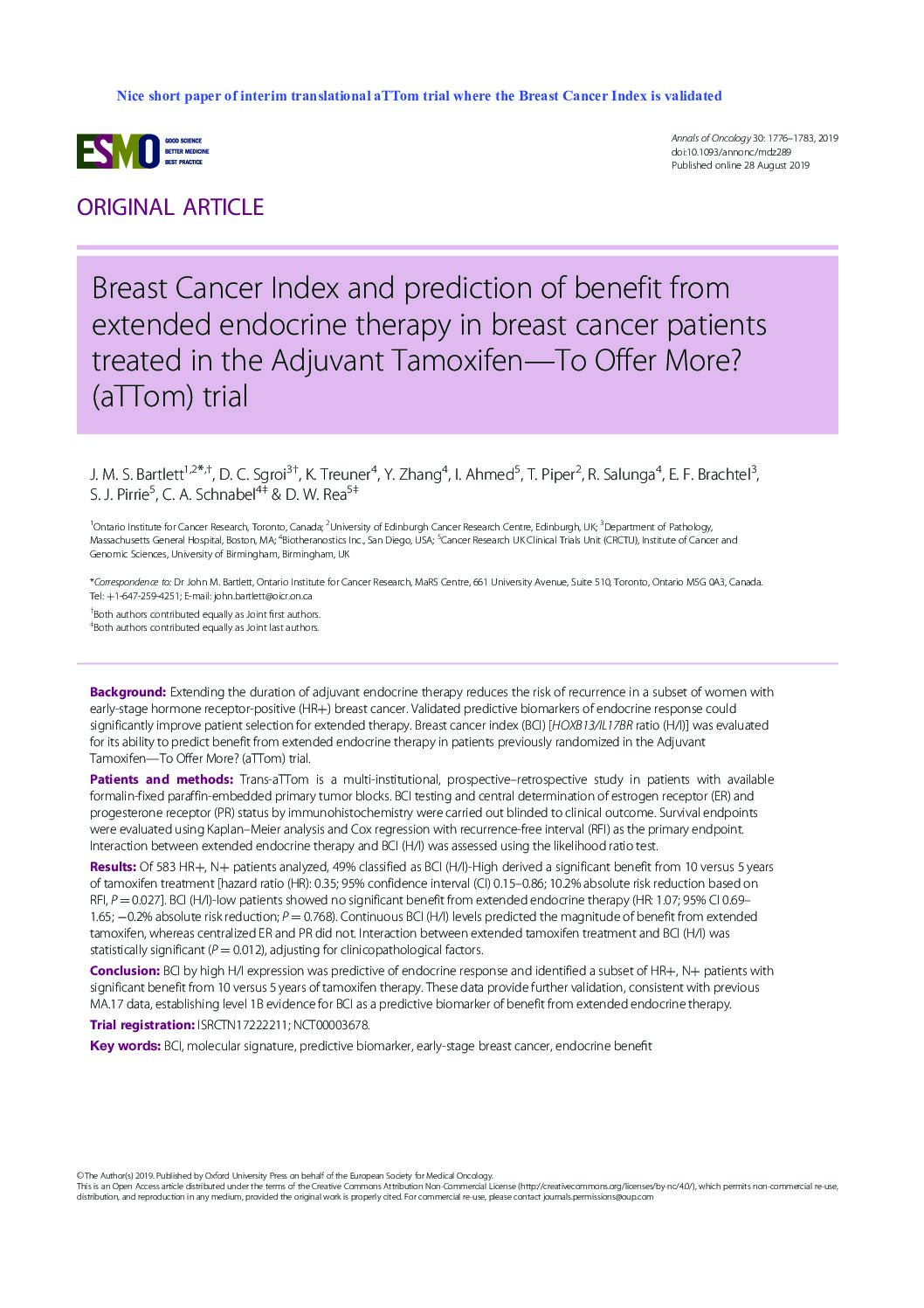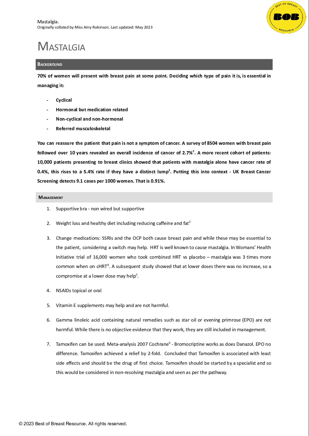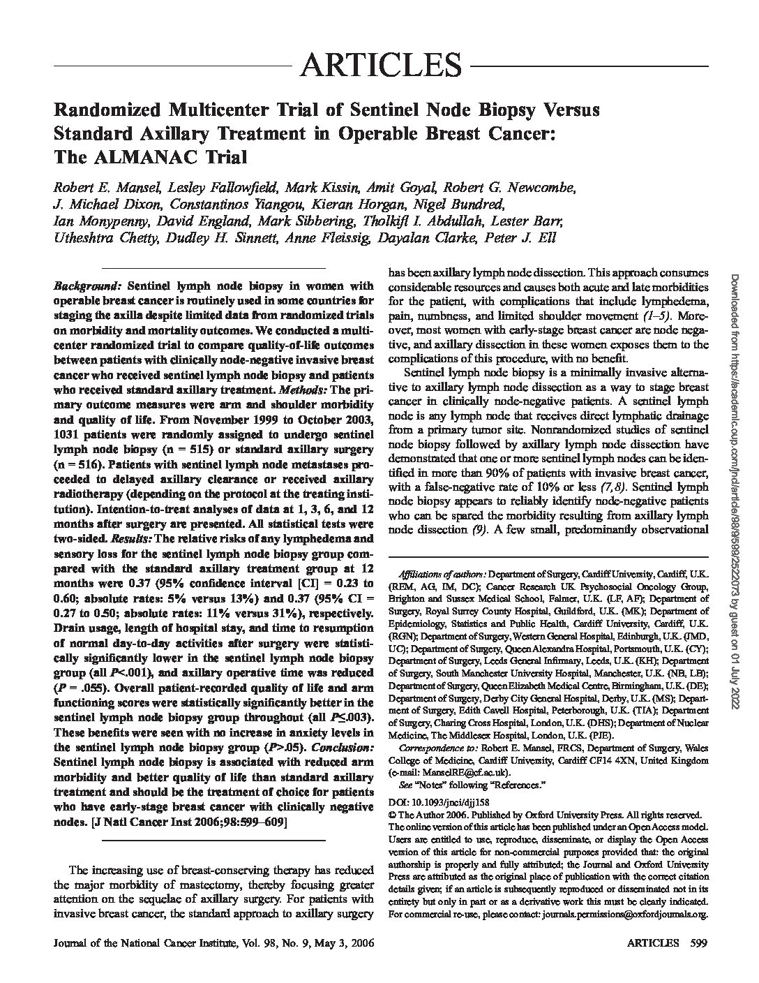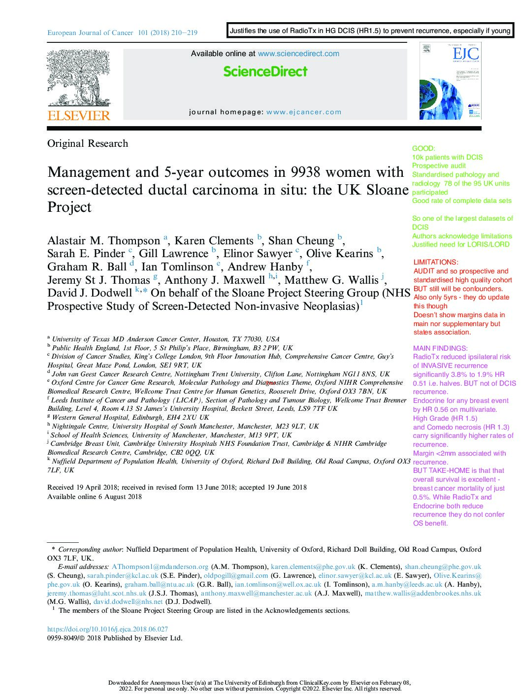 Atypia detected during breast screening and subsequent development of cancer observational analysis of the Sloane atypia prospective cohort in England (2023)View DocumentFavorite