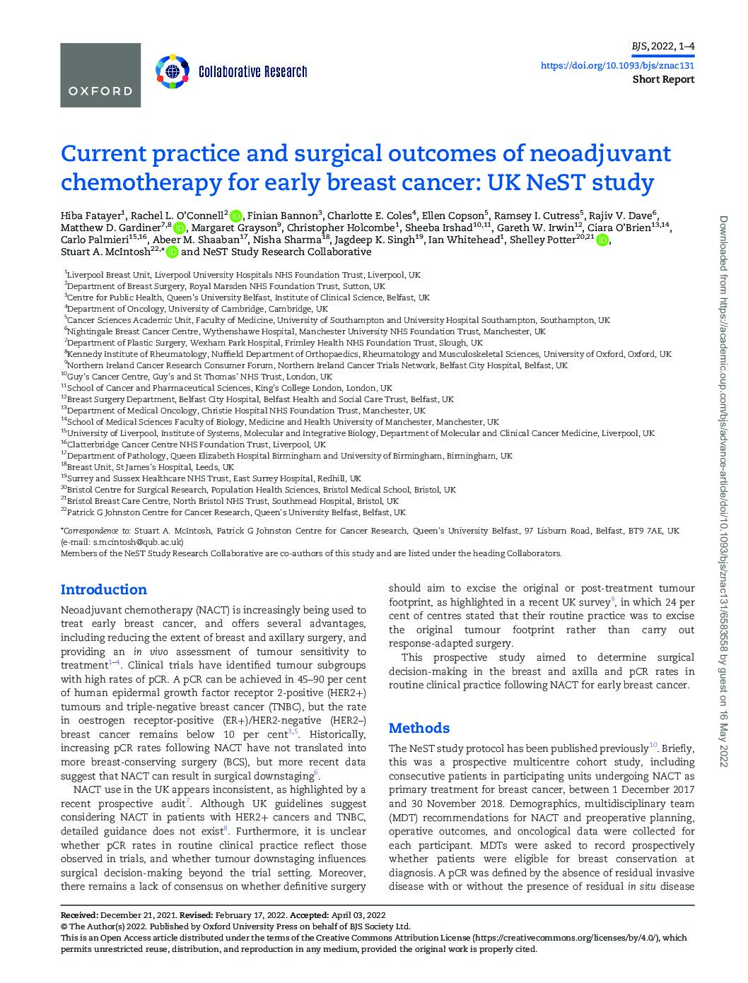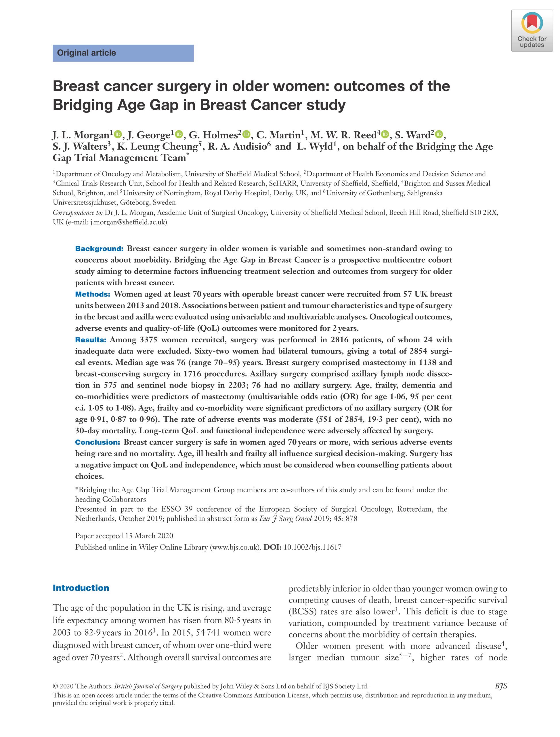 Rates of re‐excision and conversion to mastectomy after breast‐conserving BJS 2020View DocumentFavorite