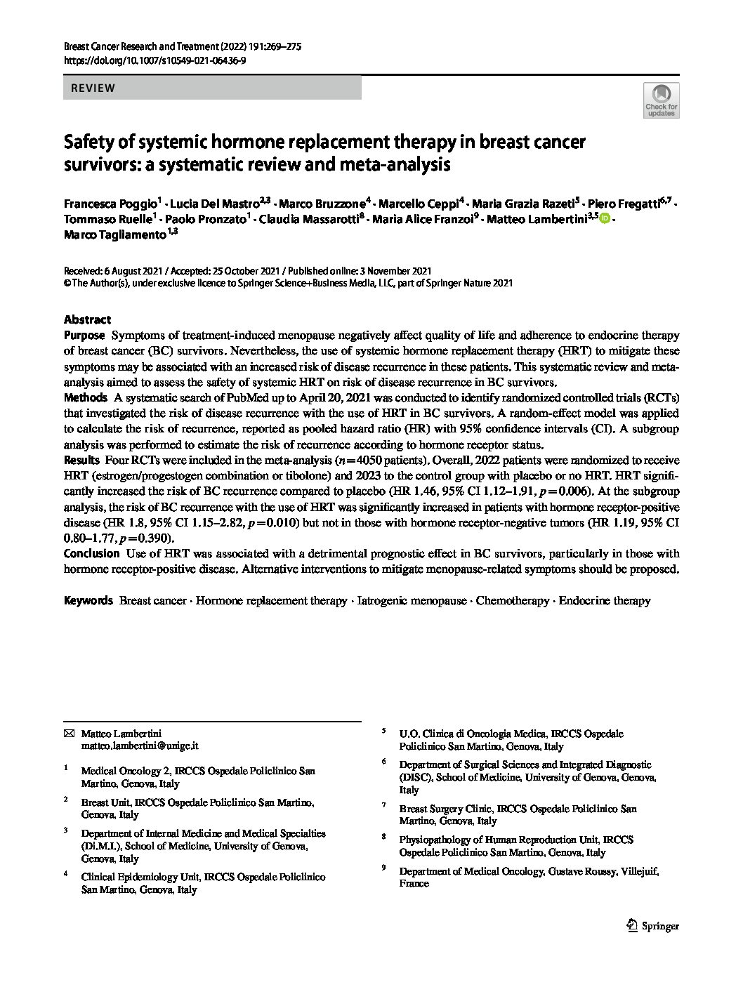 Safety of systemic hormone replacement therapy in breast cancer survivors: a systematic review and meta-analysisView DocumentFavorite